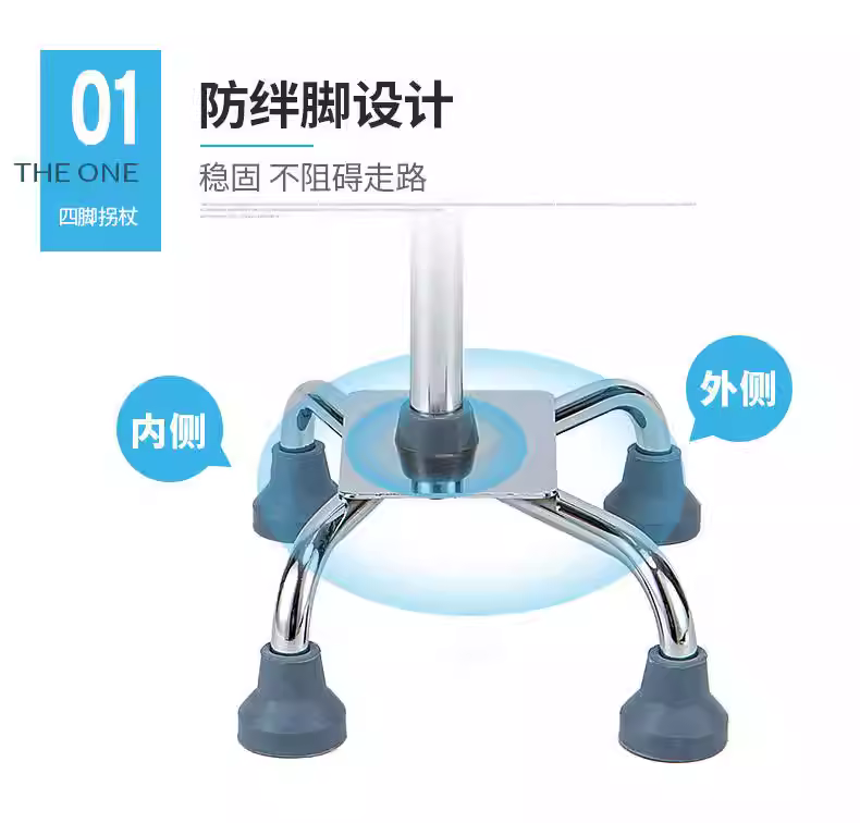 醫用(yòng)拐杖老(lǎo)人防滑拐棍手(shǒu)杖拐扙四(sì)角(jiǎo)四(sì)腳(jiǎo)老(lǎo)年(nián)人助行器康複走(zǒu)路(lù)单捌